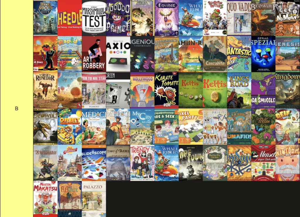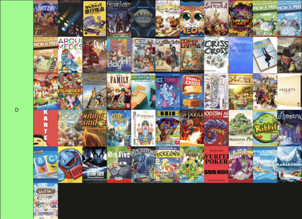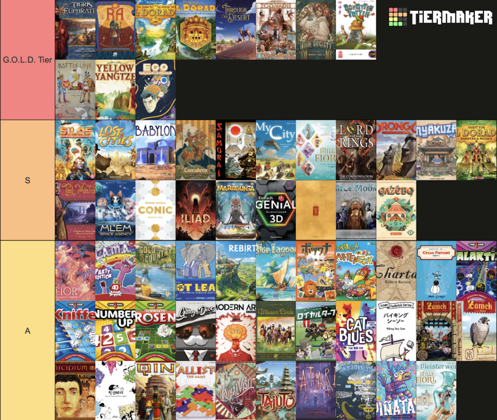 Here is a link to the Tiermaker list itself where you can rank and share all of the Knizia games you’ve played!